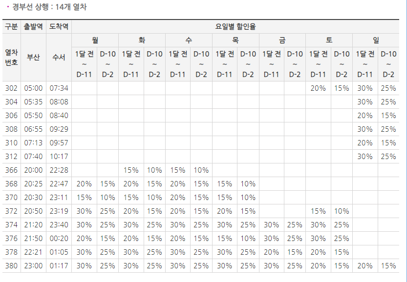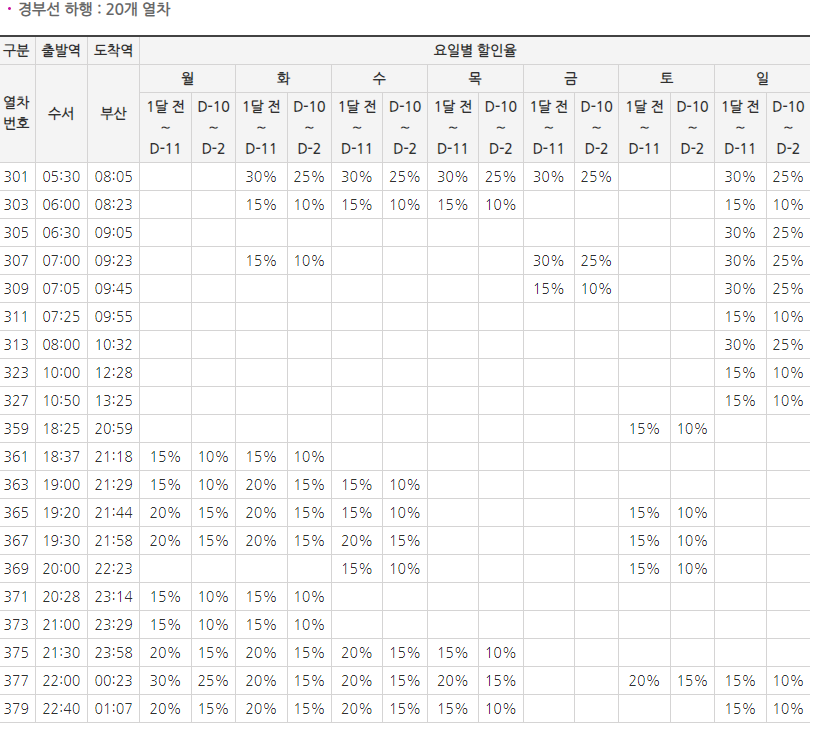 SRT 승차요금 할인은 구간과 요일에 따라 차이가 있기 때문에 예약 전에 반드시 확인해야 합니다. 또한 대부분 11일 전에 예약을 해야 최대 30% 할인이 가능하므로, 여행 계획을 미리 세우고 SRT 예매를 통해 할인 혜택을 놓치지 마시길 바랍니다.