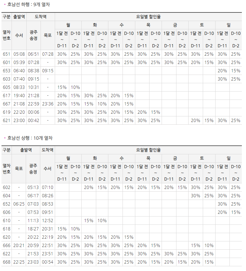 SRT 승차요금 할인은 구간과 요일에 따라 차이가 있기 때문에 예약 전에 반드시 확인해야 합니다. 또한 대부분 11일 전에 예약을 해야 최대 30% 할인이 가능하므로, 여행 계획을 미리 세우고 SRT 예매를 통해 할인 혜택을 놓치지 마시길 바랍니다.