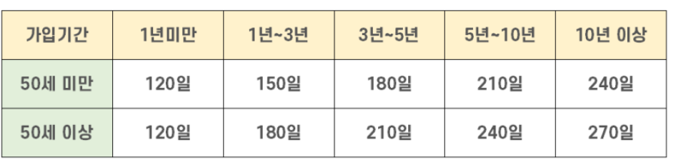 10년 이상 근무하고 50세 이상이면 270일 동안 급여가 지급됩니다.